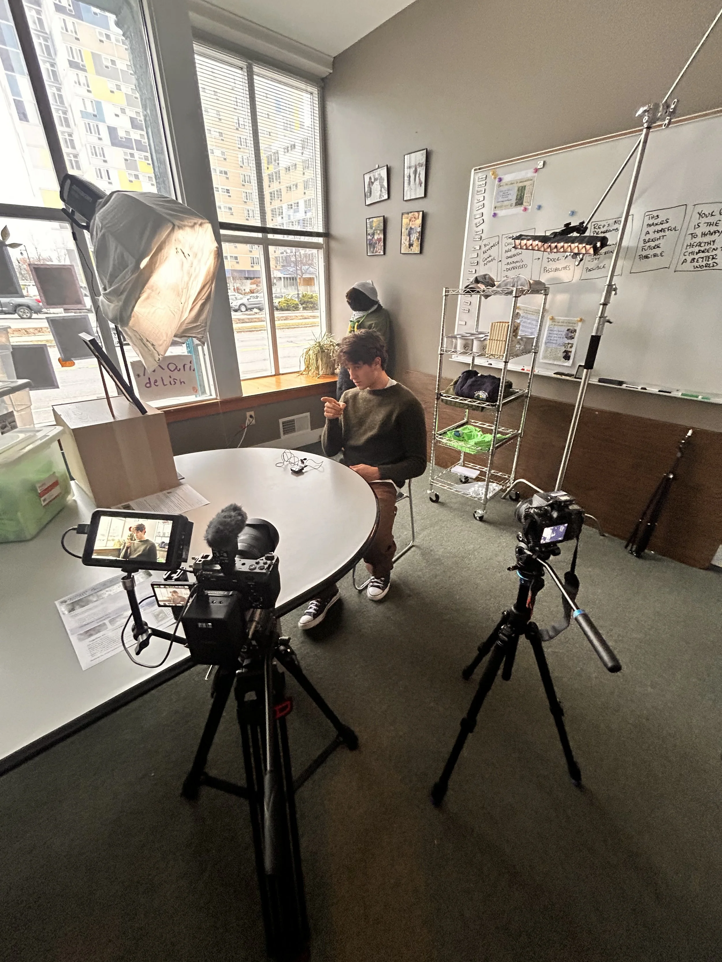 For the interview setup we opted to use the natural light of the window along with an extra soft source to add more light to the left side of the face. Decided to also use a subtle backlight in order to pop the subject out from the background. For the outdoor sections, Quinn and I created a very run and gun handheld setup, creating the flexibility to move around with the students and go wherever needed.